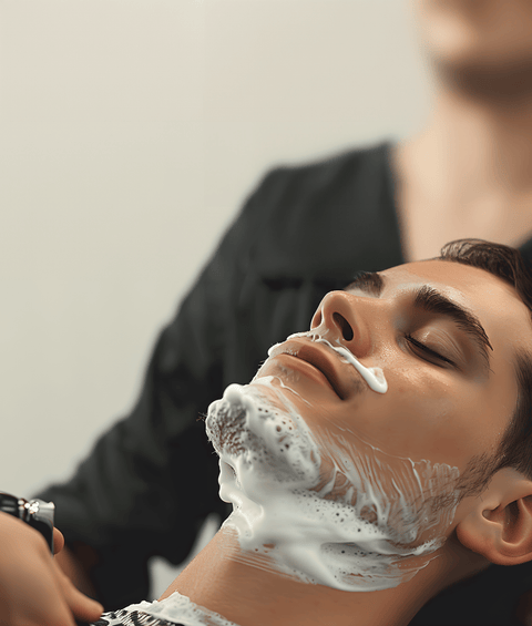 Shaving Process:Using premium shaving creams or gels, our skilled barbers apply a rich lather to your face, creating a smooth surface for the razor. Employing expert techniques, we shave with precision along the natural grain of your hair to minimize irritation and achieve a close, comfortable shave.